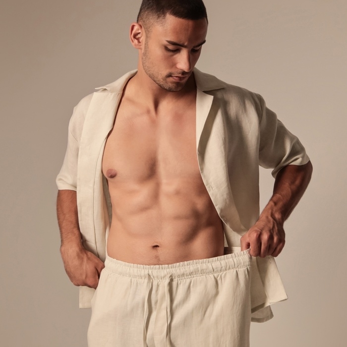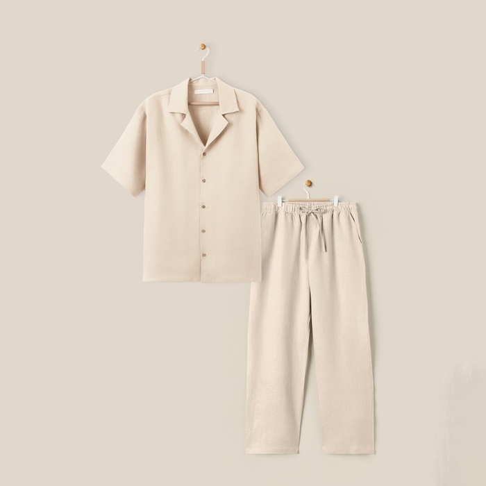 Костюм мужской домашний (рубашка с коротким рукавом и брюки) SL HOME р. S, молочный