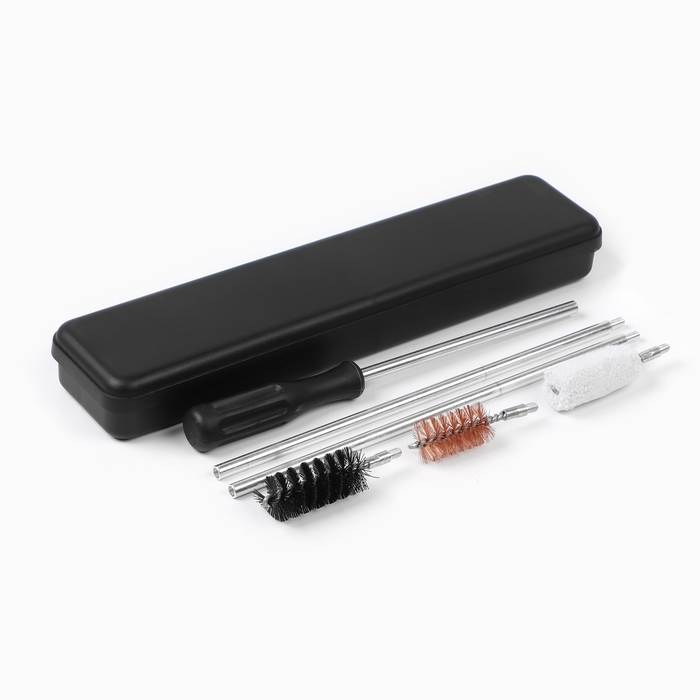 Набор предназначен для чистки оружия 12 калибра. Опытные охотники и солдаты знают, что правильно стреляет только чистое оружие. Ухоженный ствол не даёт осечек и постоянно показывает точную и кучную стрельбу. В комплекте для чистки оружия входит тресоставный шомпол из пружинной стали с резьбовыми соединениями, металлический спиральный ершик с латунной резьбой, нейлоновый щетинный ершик с латунной резьбой, пуховой ершик с латунной резьбой. Аксессуар для ухода за оружием изготовлен из высококачественных материалов. Удобный и надежный набор для чистки и ухода за оружием.