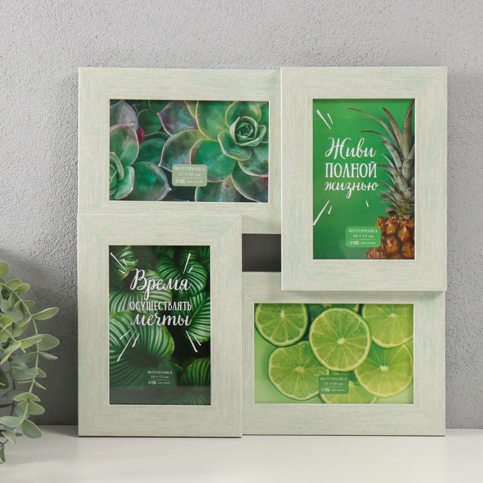 Фоторамка пластик на 4 фото 10х15 см "Аврора" зелёная 31,5х31,5 см