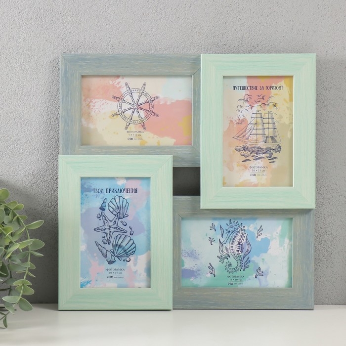 Фоторамка пластик на 4 фото 10х15 см "Аврора" зелено-голубая 31,5х31,5 см