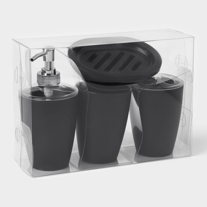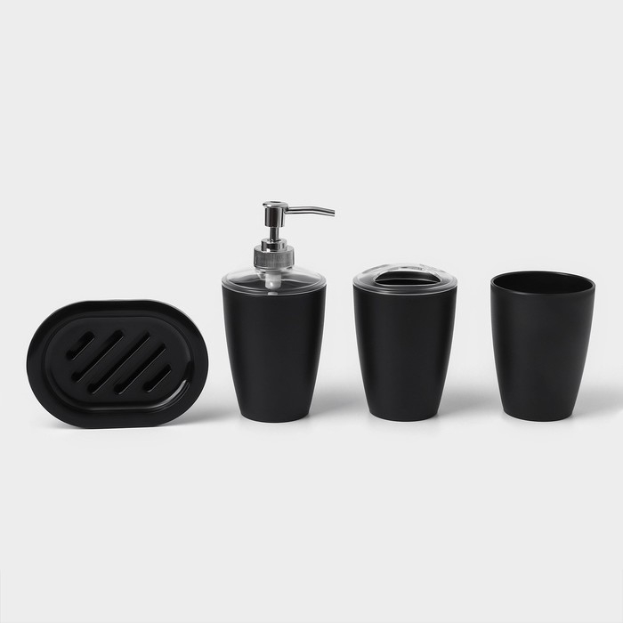 Набор для ванной «Эталон», 4 предмета: дозатор для мыла, мыльница, 2 стакана, 24×8×17 см, цвет чёрный
