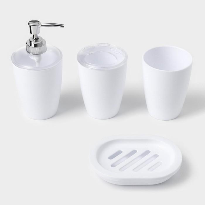 Набор аксессуаров для ванной комнаты Доляна «Изящество», 4 предмета (дозатор 250 мл, мыльница, 2 стакана), цвет белый