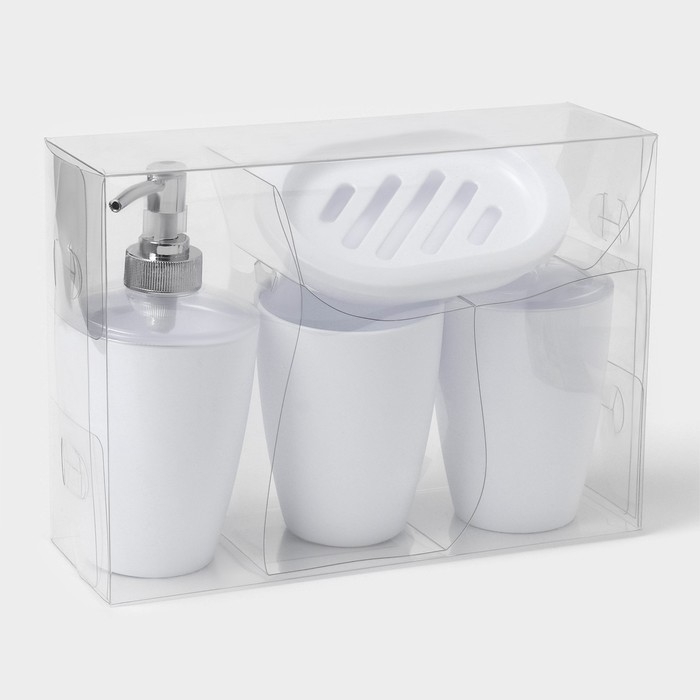 Набор для ванной «Эталон», 4 предмета: дозатор для мыла, мыльница, 2 стакана, 24×8×17 см, цвет белый