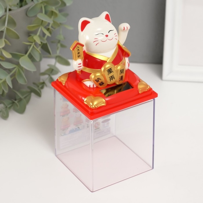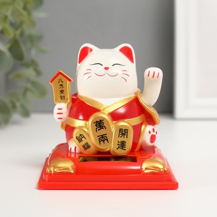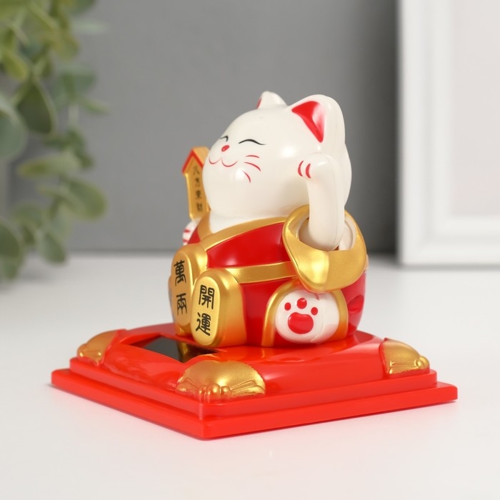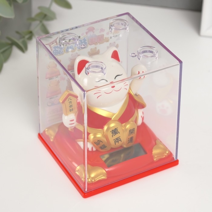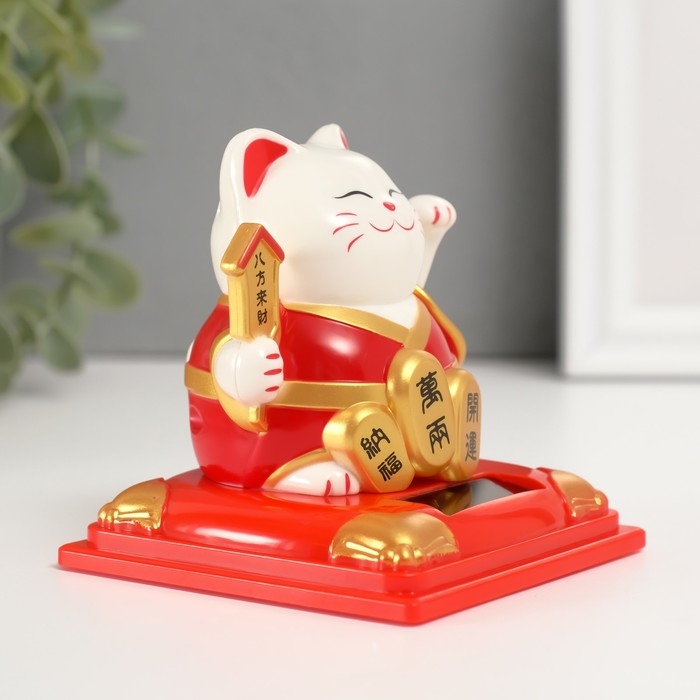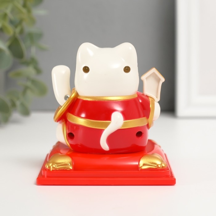 Маятник пластик "Белый Манэки-нэко в красном халате" 8х8х8,2 см