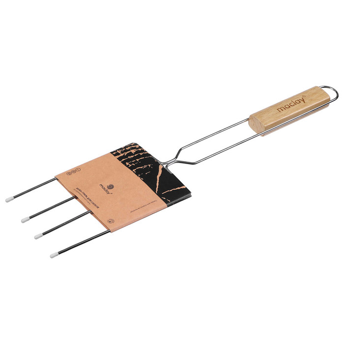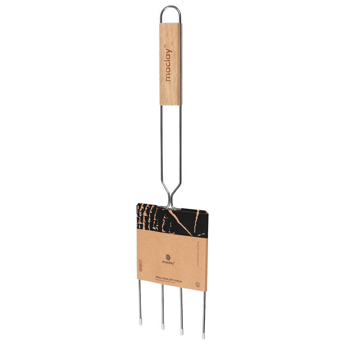 Вилка гриль для сосисок maclay, 12x20 см, хромированная сталь, для мангала