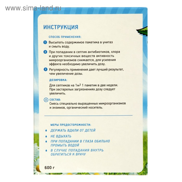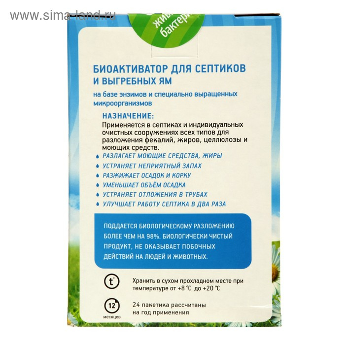 Средство для септиков и выгребных ям Биоактиватор Биосепт, 600 гр 24 дозы