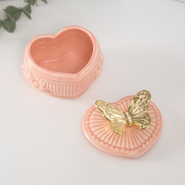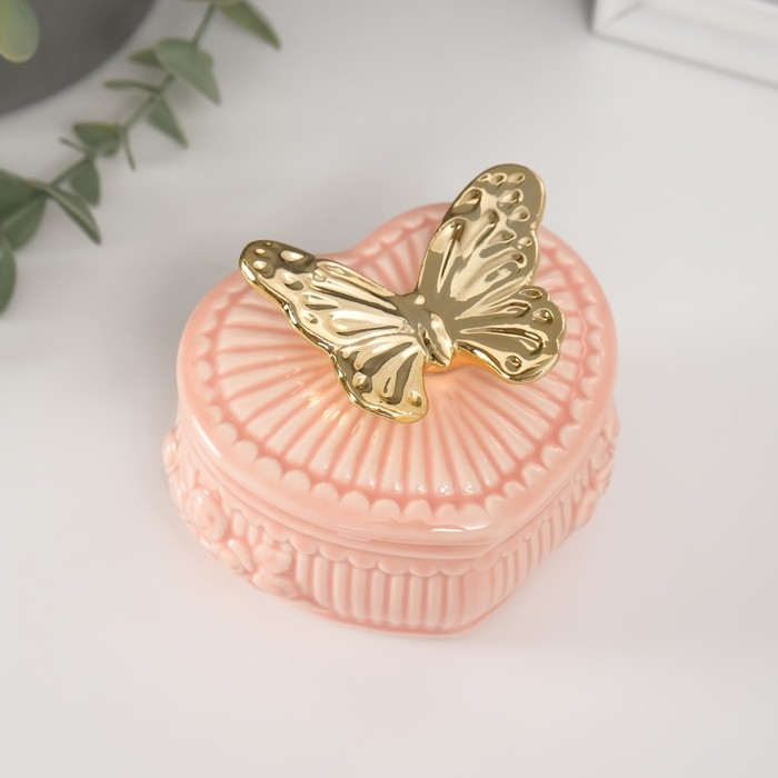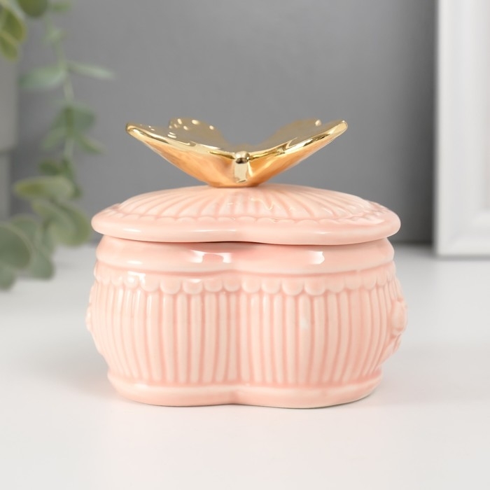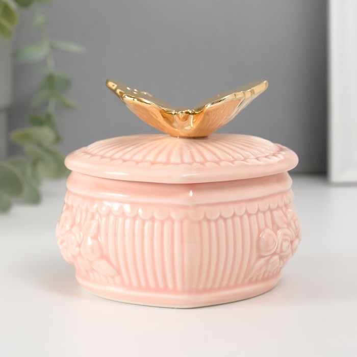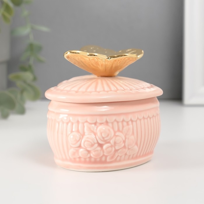 Шкатулка керамика "Бабочка прованс" розовая 8,5х9,3х8,5 см