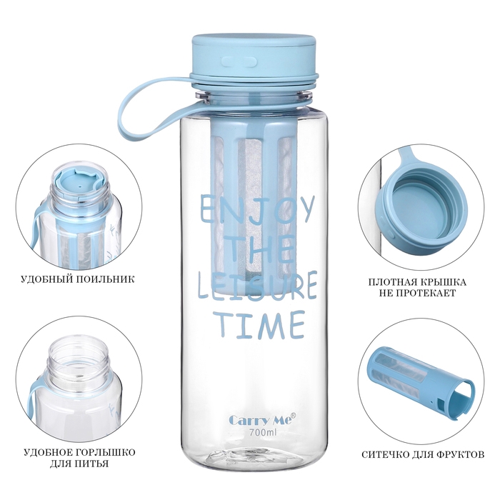 Бутылка для воды, 800 мл, 22 х 10.5 см, с ситом, синяя
