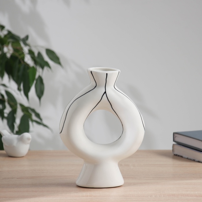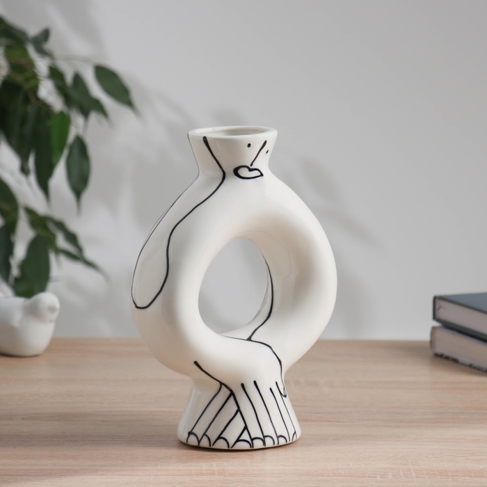 Ваза керамика настольная "Пикассо" (ручная роспись) длинные руки, 23х16 см, чёрно-белый