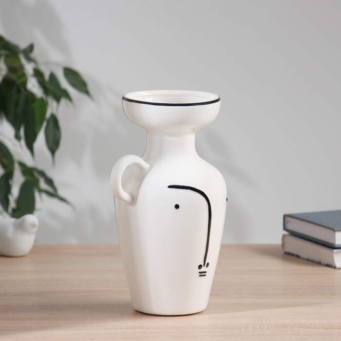 Ваза керамика настольная "Пикассо" (ручная роспись) кувшин лицо, 23х10,5 см, чёрно-белый