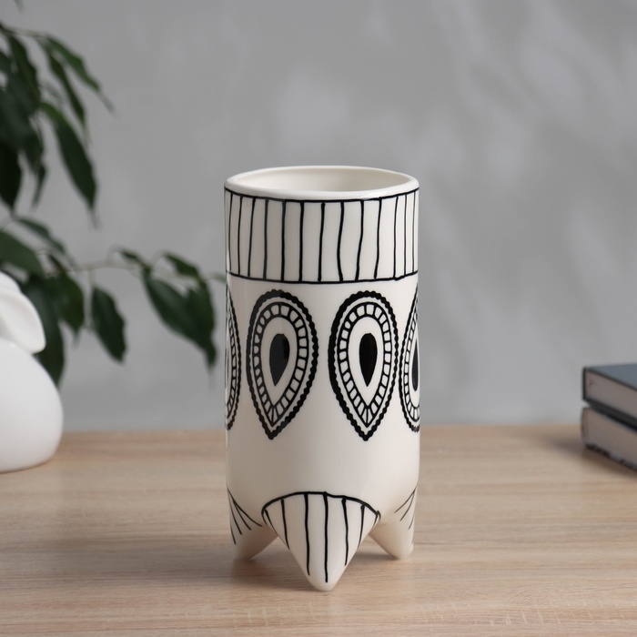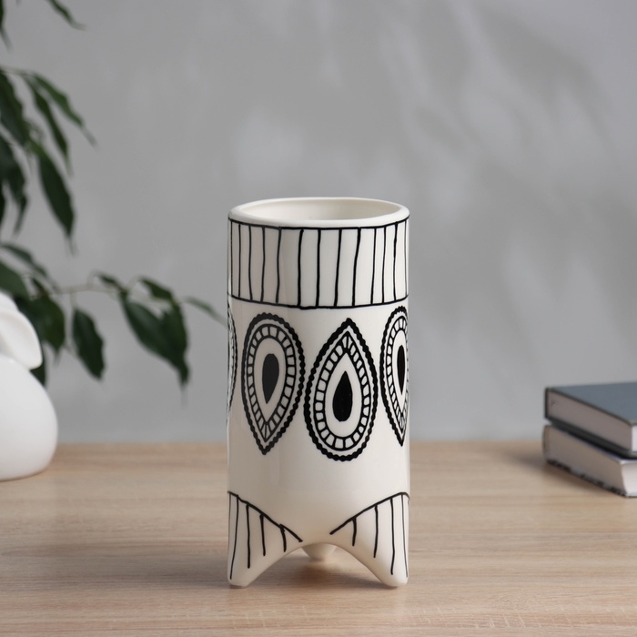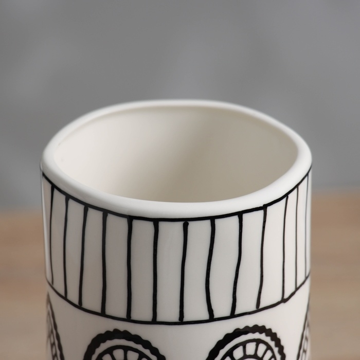 Ваза керамика настольная "Пикассо" (ручная роспись) орнамент, 20х9,5 см, чёрно-белый