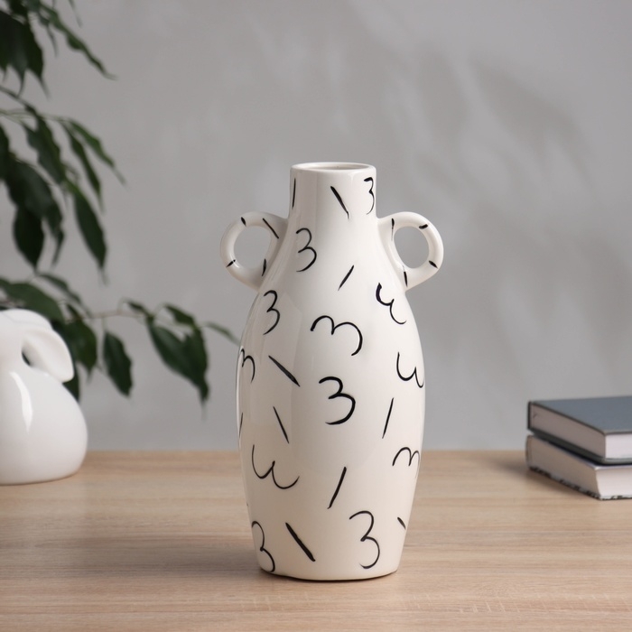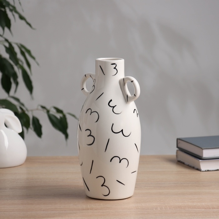 Ваза керамика настольная "Пикассо" (ручная роспись) штрихи кувшин, 24,5х9,5 см, чёрно-белый 104550