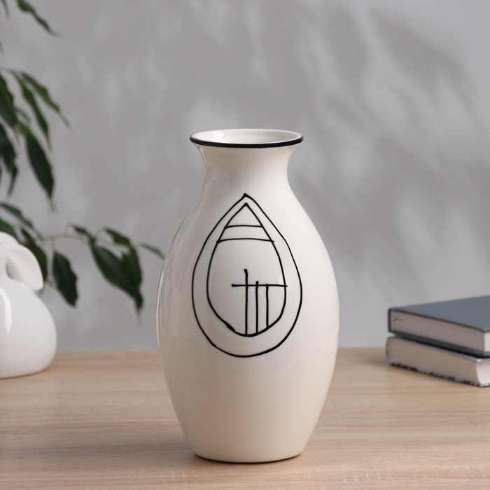 Ваза керамика настольная "Пикассо" (ручная роспись) талия геометрия, 23х11,5 см, чёрно-белый 10455