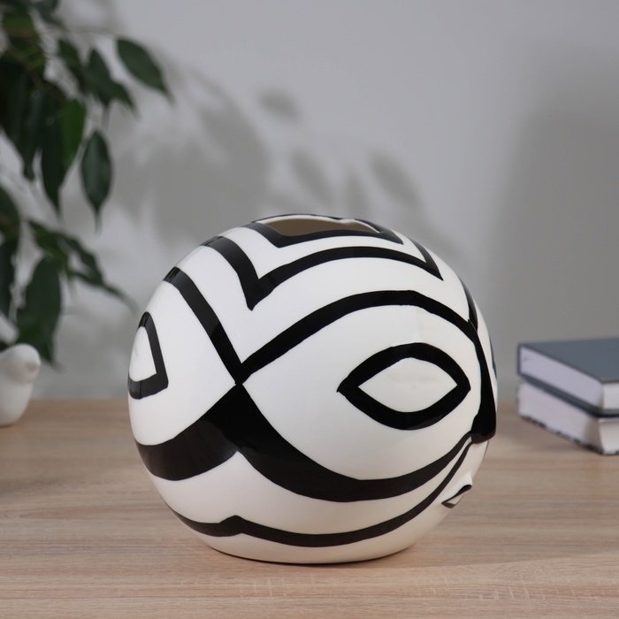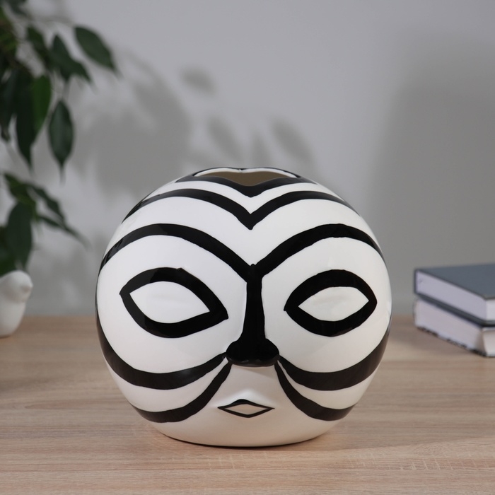 Ваза керамика настольная "Пикассо" (ручная роспись) маска, 18х18 см, чёрно-белый