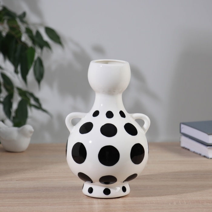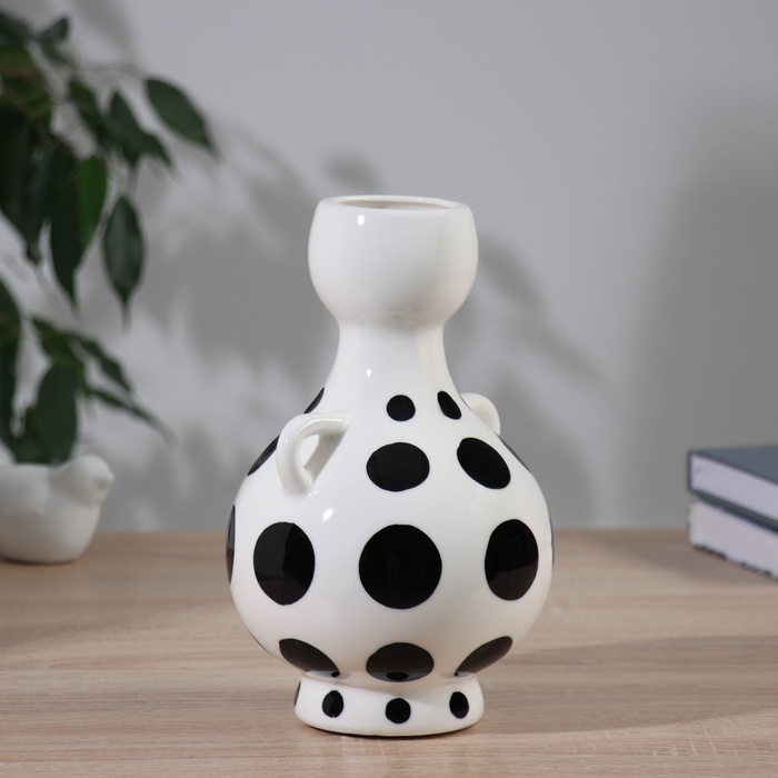 Ваза керамика настольная "Пикассо" (ручная роспись) крупный горох, 22х12 см, чёрно-белый