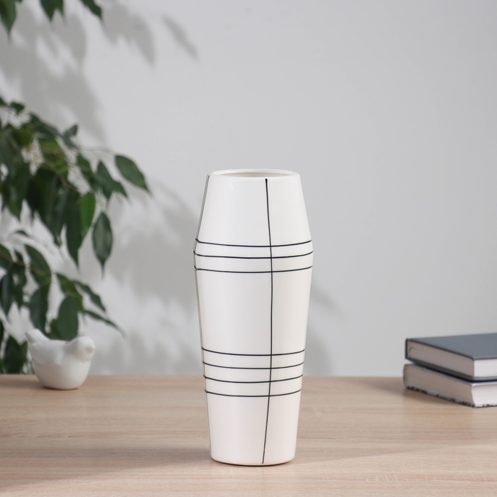 Ваза керамика настольная "Пикассо" (ручная роспись) классика полосы, 24х7,5 см, чёрно-белый 104550