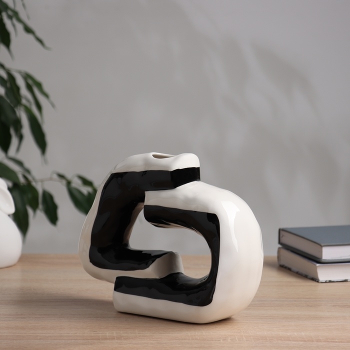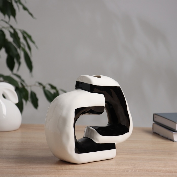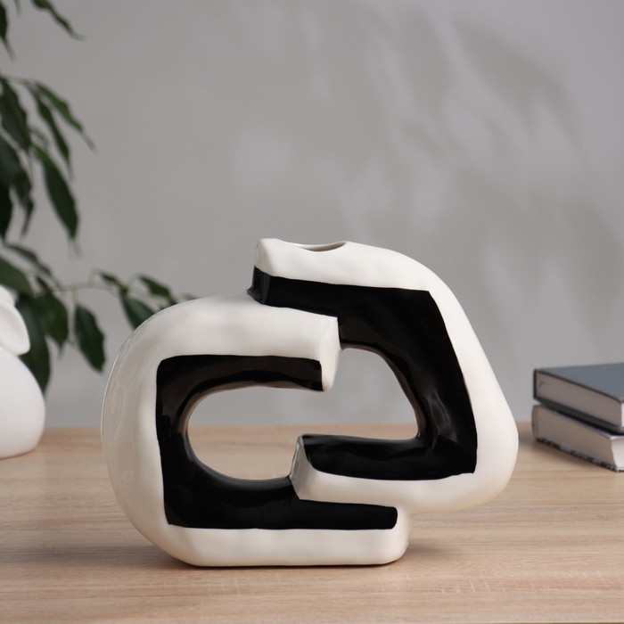 Ваза керамика настольная "Пикассо" (ручная роспись) две половинки, 18х22 см, чёрно-белый