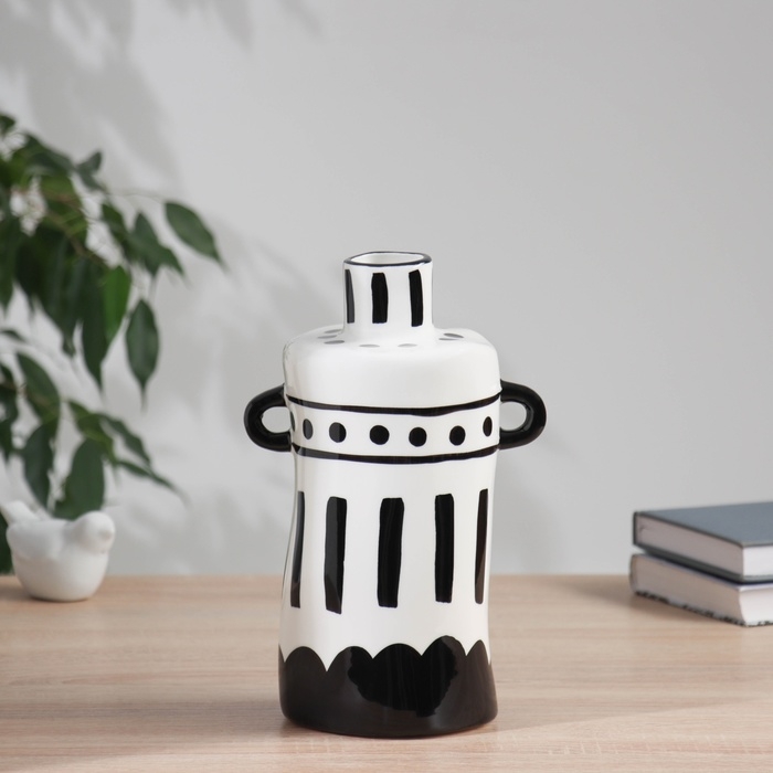 Ваза керамика настольная "Пикассо" (ручная роспись) кувшин узор, 23х11 см, чёрно-белый