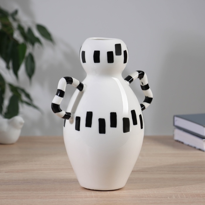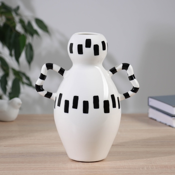 Ваза керамика настольная "Пикассо" (ручная роспись) кувшин изящность, 23х10 см, чёрно-белый 104551