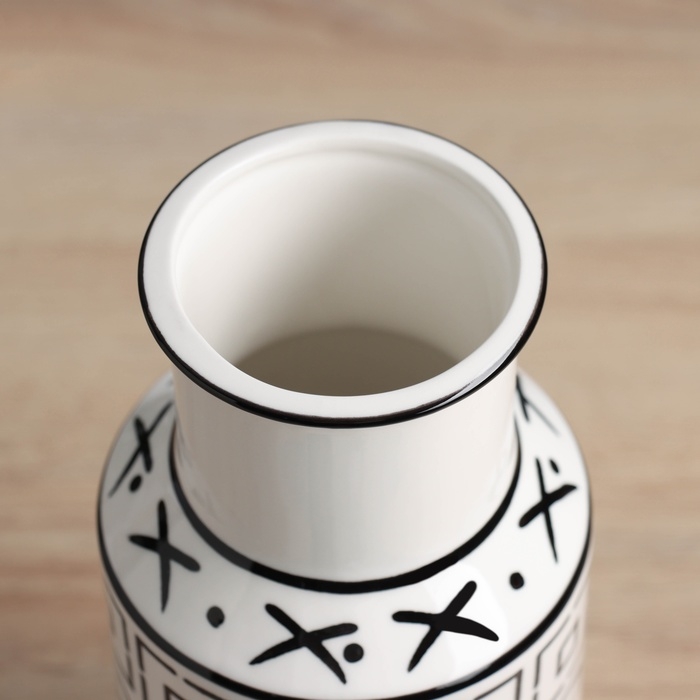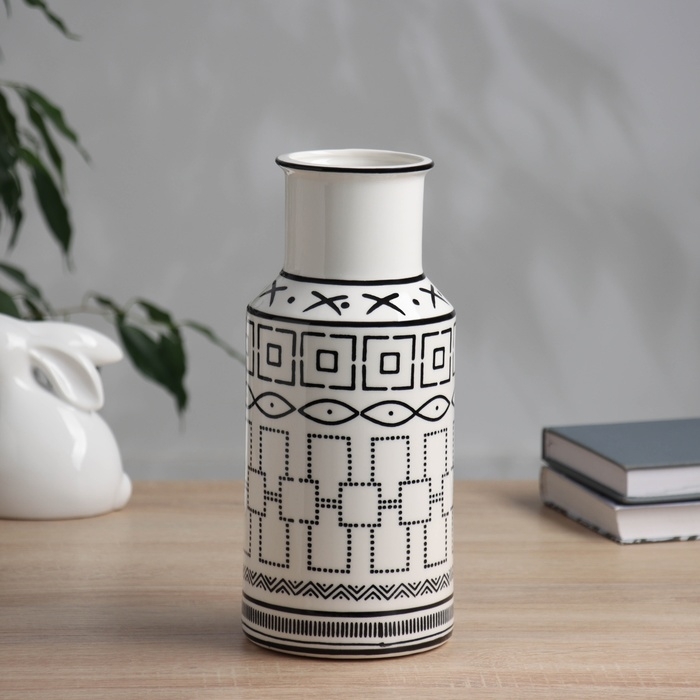 Ваза керамика настольная "Пикассо" (ручная роспись) орнамент стиль, 25,5х11 см, чёрно-белый 104551