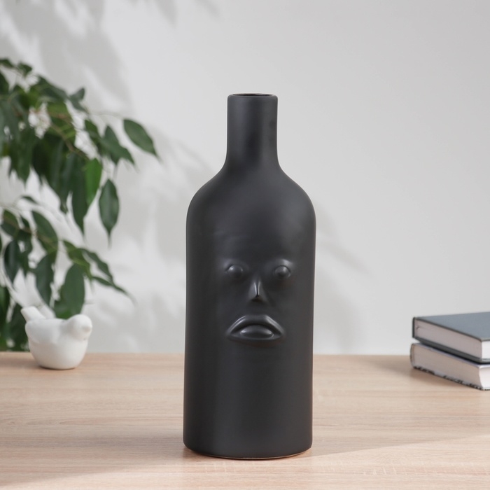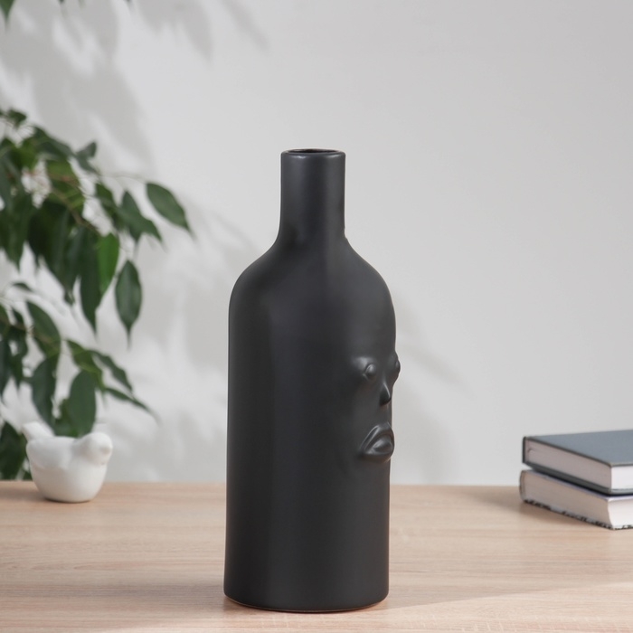 Ваза керамика настольная "Пьетро" недовольство, 28,5х10,5 см, чёрный