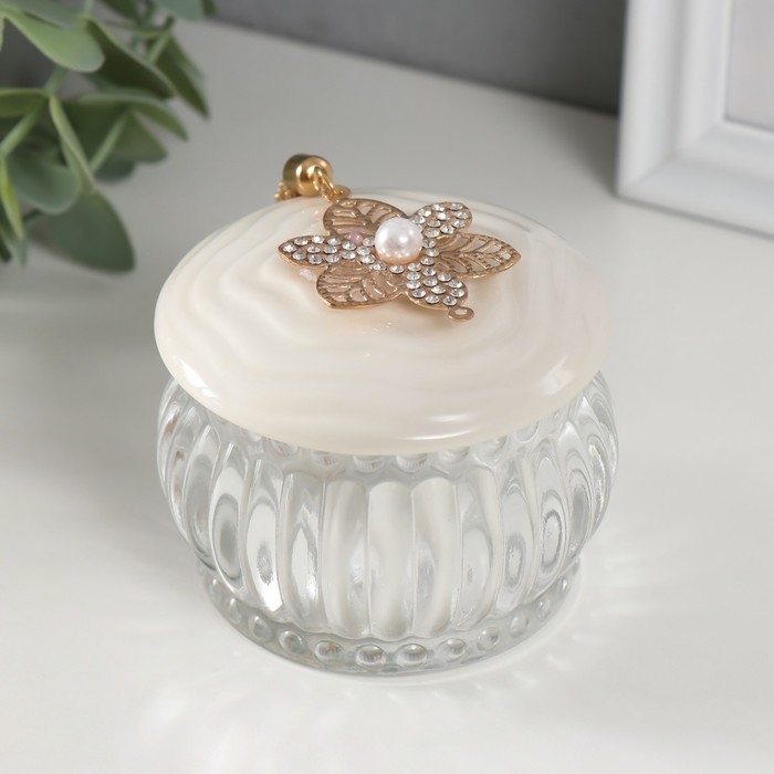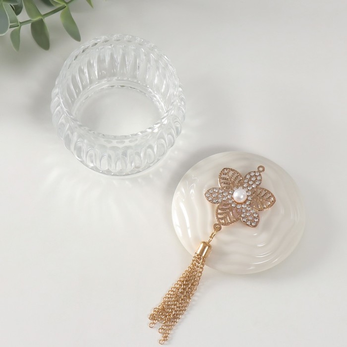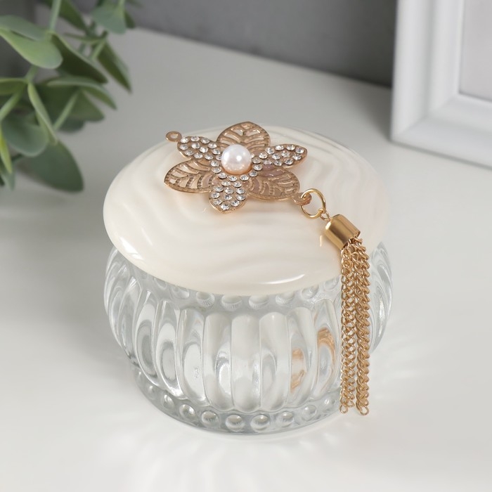 Шкатулка стекло, керамика "Цветок на волнах" с кисточкой 7х7х6,5 см