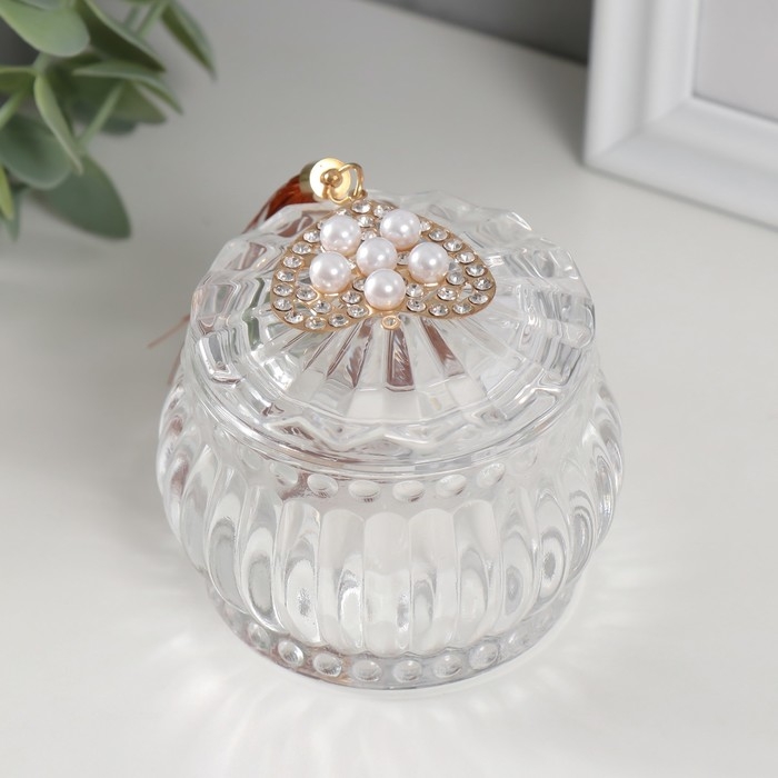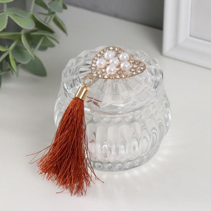 Шкатулка стекло "Сердечко жемчужное" с кисточкой 7х7х7 см
