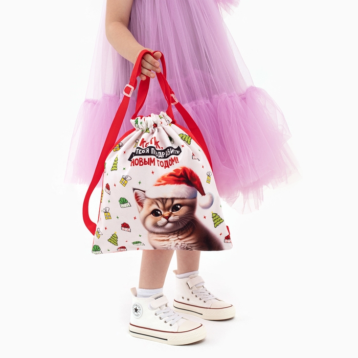Сумка детская «Котик в шапке», 35 × 30 см, новогодняя