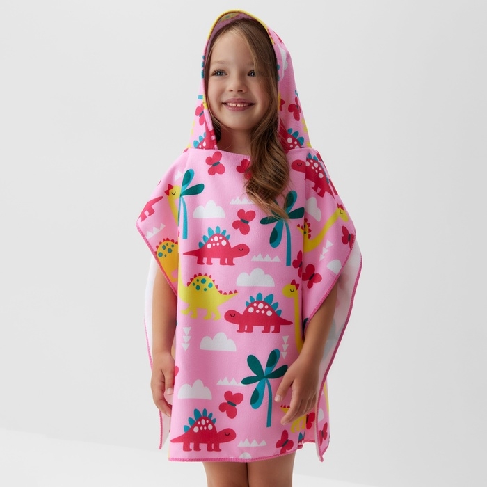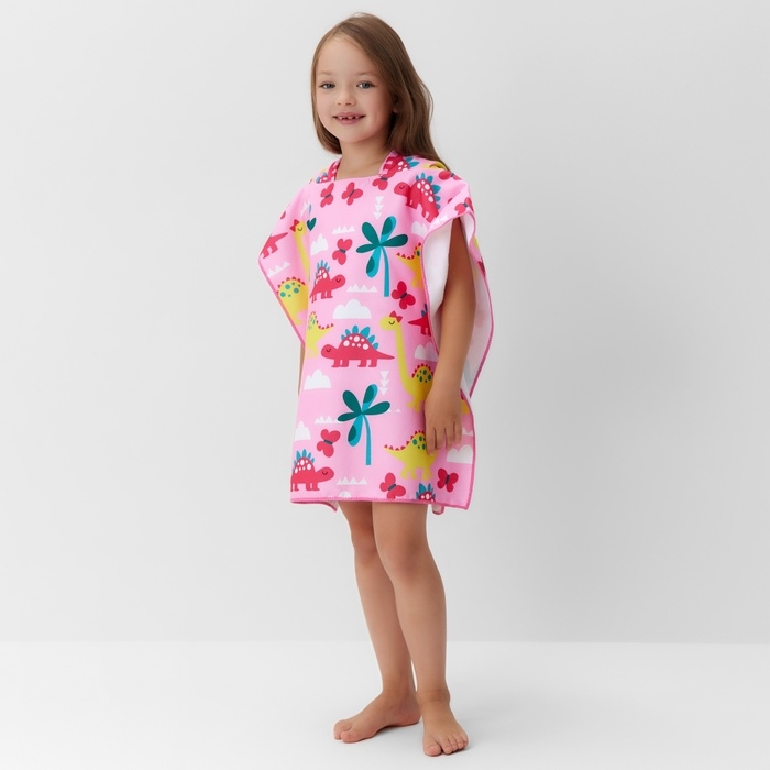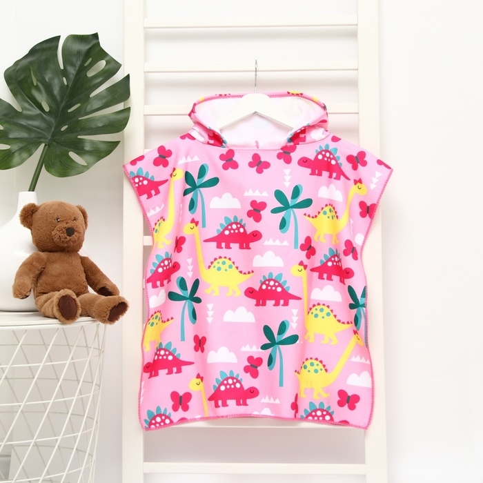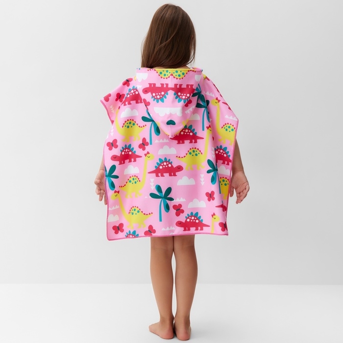 Полотенце-пончо детское LoveLife "Динозавры", цв. розовый, 60х120 см, 100% пэ, 230 г/м2