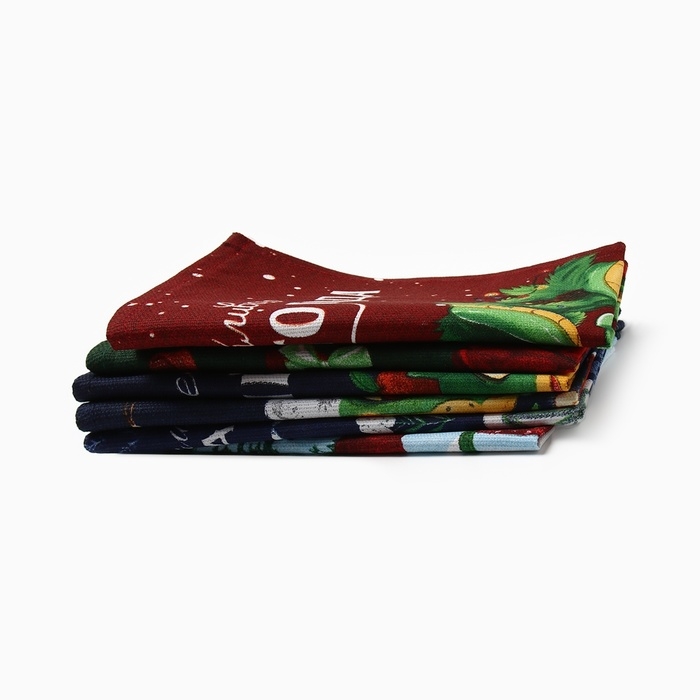 Набор полотенец Доляна "Счастливого нового года" 28х46 см - 6 шт, 100% хл, рогожка 164 г/м2