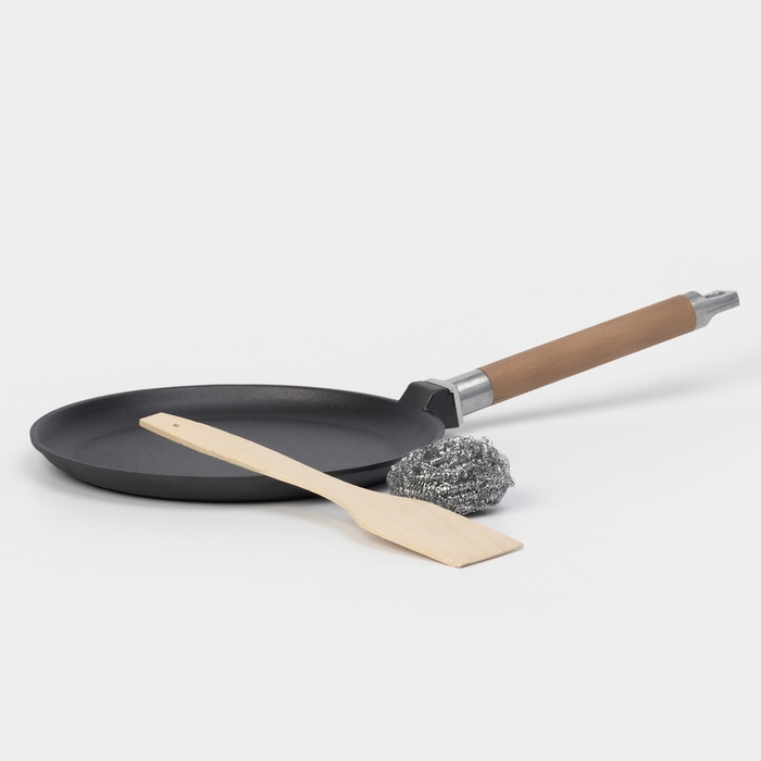 Сковорода блинная чугунная Wild Kitchen, d=24 см, лопатка и губка в комплекте