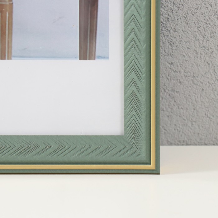 Фоторамка пластик 30х40 см "Галочки на зелёном" с золотой обводкой 1,4х32,7х42,5 см