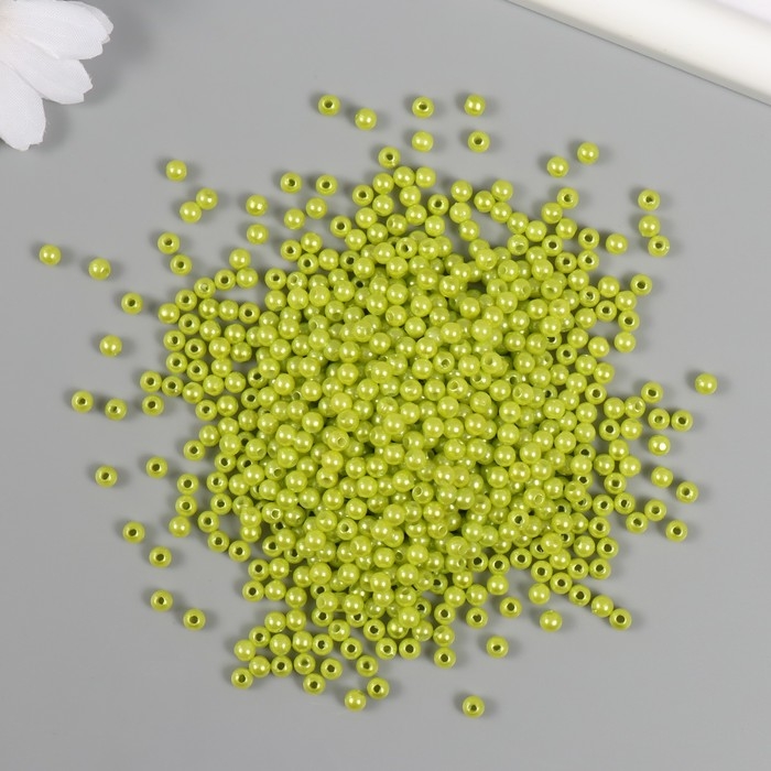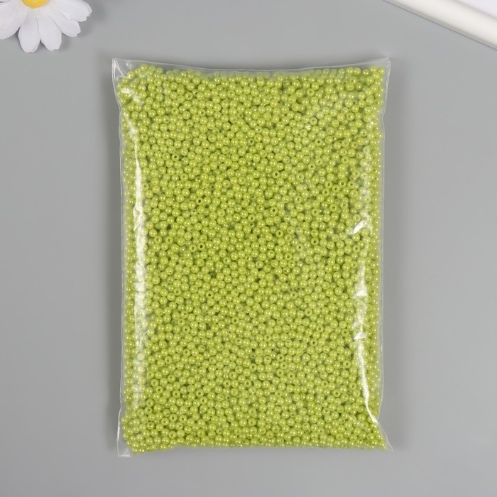 Набор бусин "Жемчуг" d 4 мм, 250 гр, салатовый