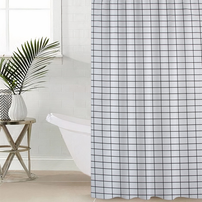 Штора для ванной Этель "Клетка", цв. белый, 180х180 см, полиэстер