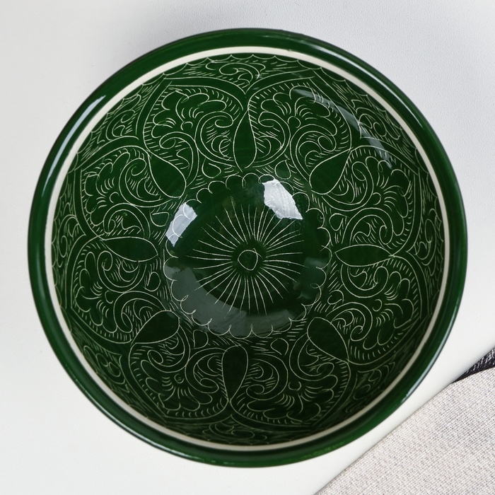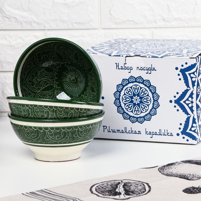 Набор салатников Риштанская керамика "Узоры", 15 см, 3 шт, в подарочной упаковке, зелёные