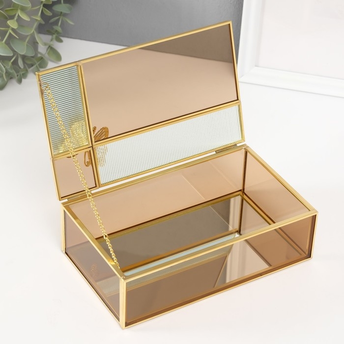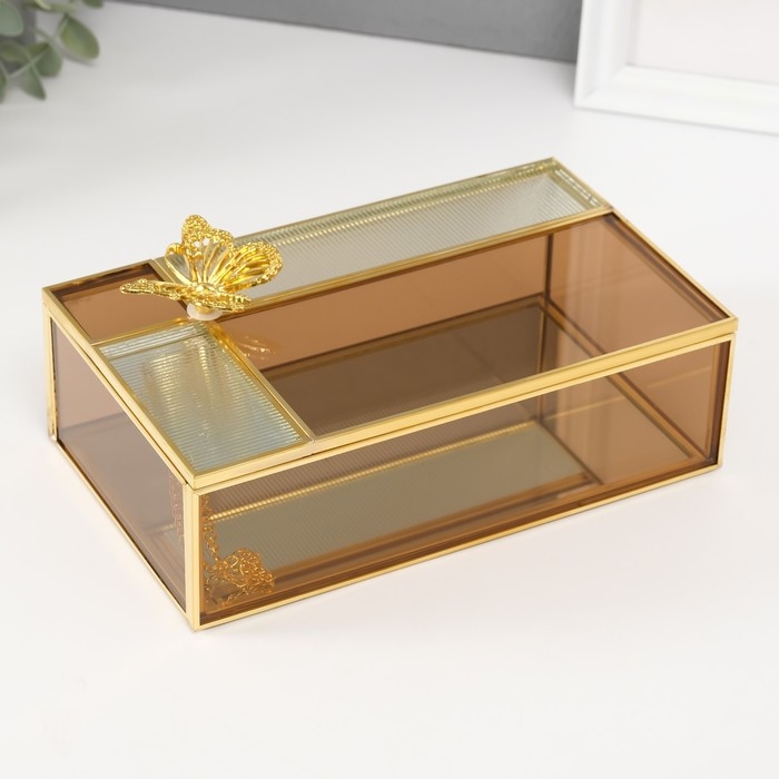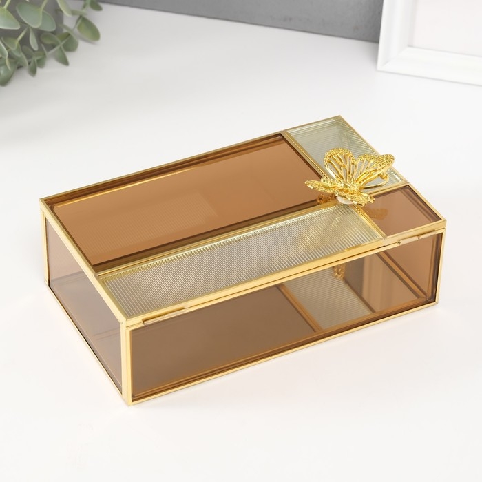 Шкатулка стекло с металлическим каркасом "Бабочка" прямоугольник карамель 12.3х20х8,3 см
