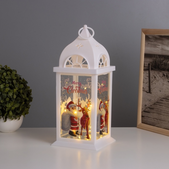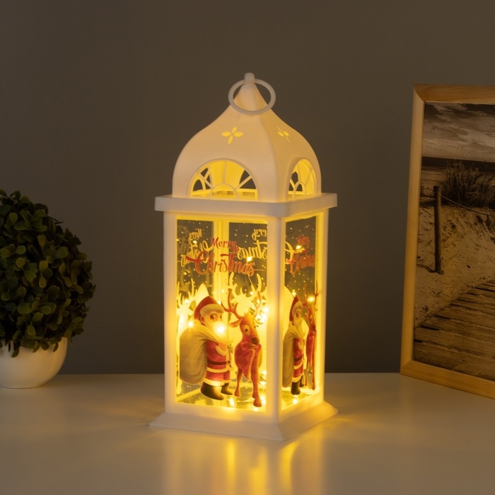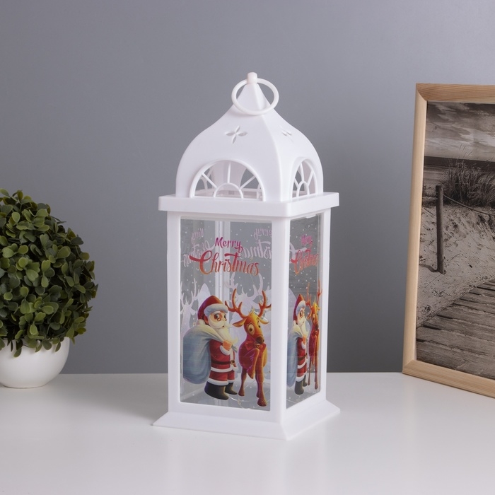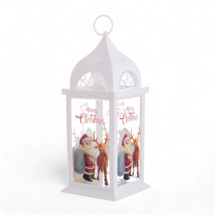 Светильник «Санта Клаус с оленем» 3хААА белый 14,2х14,2х34см МОДЕЛЬ: 18