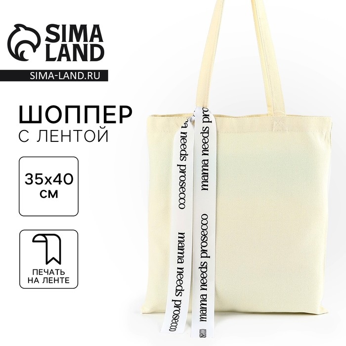 Шопер с лентой Prosecco, 35х0,5х40 см, цвет бежевый