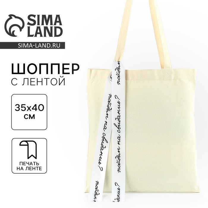 Шопер с лентой «Пойдем на свидание», 35х0,5х40 см, цвет бежевый