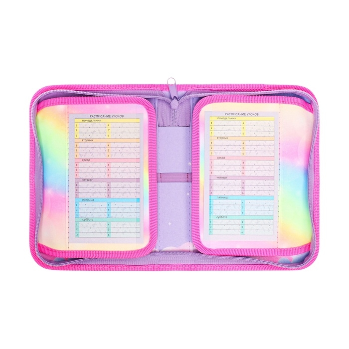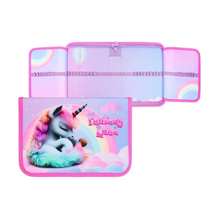 Пенал 1 секция, 140 х 200 х 40 мм, 2 откидные планки, тканевый, ПКТ 09-20 "Зефирная единорожка"