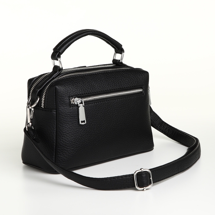 Сумка женская, 23*14*10, 2 отд на молнии, н/карман, регул ремень, черный