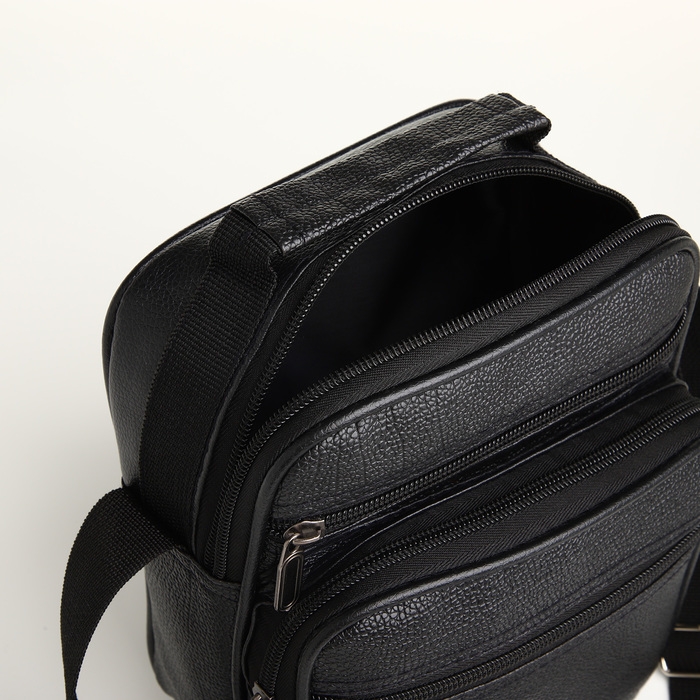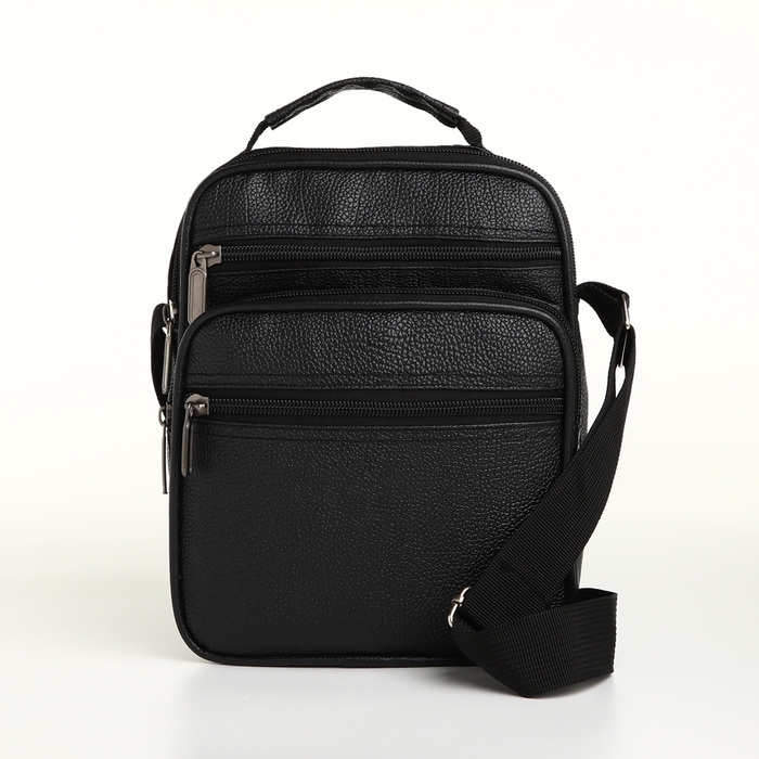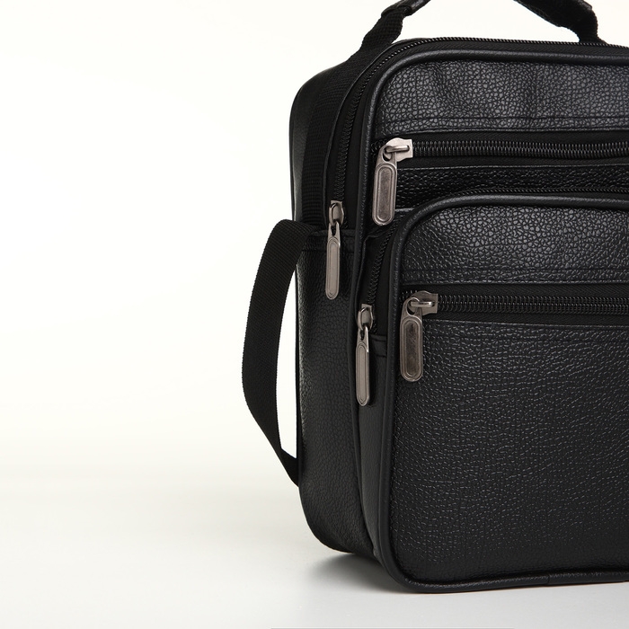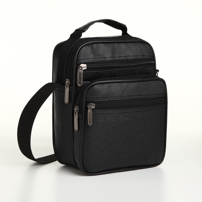Сумка мужская на молнии, 3 наружных кармана, цвет чёрный