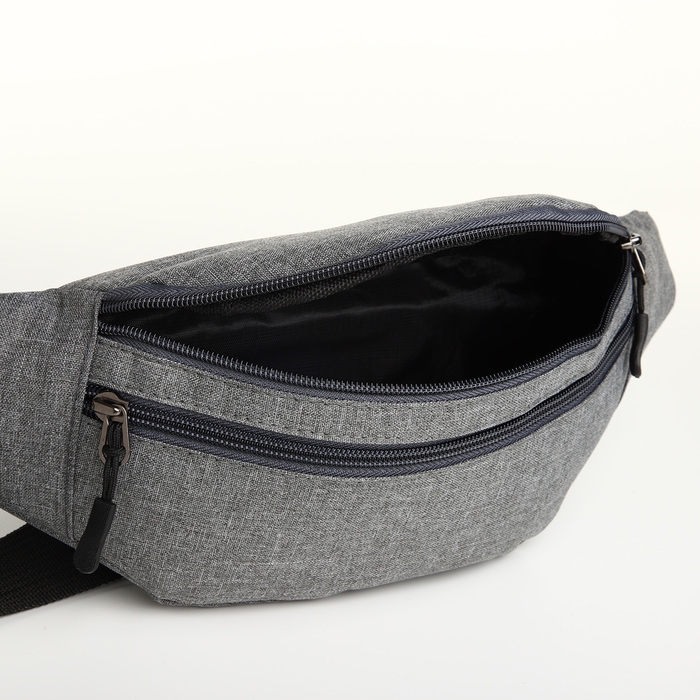Сумка поясная на молнии, наружный карман, разъём для USB, цвет серый