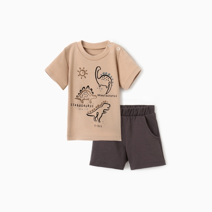 Костюм: футболка и шорты Крошка Я Dino, рост 68-74 см, бежевый/серый