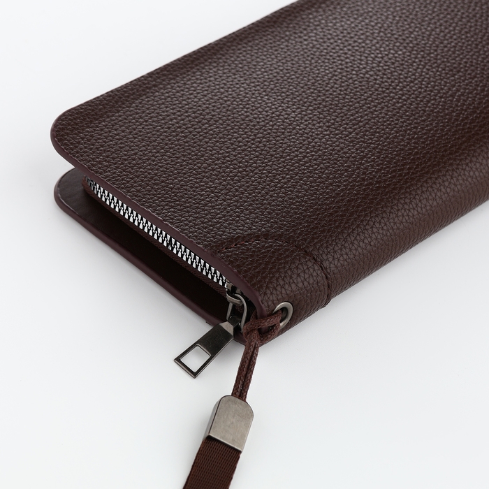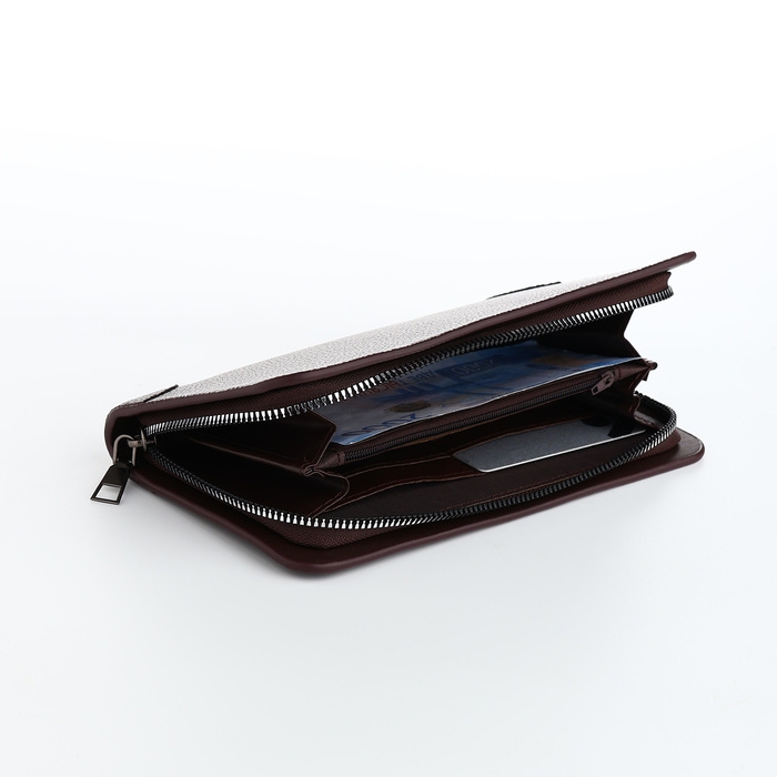 Портмоне мужское на молнии, отдел для карт, монет, цвет коричневый