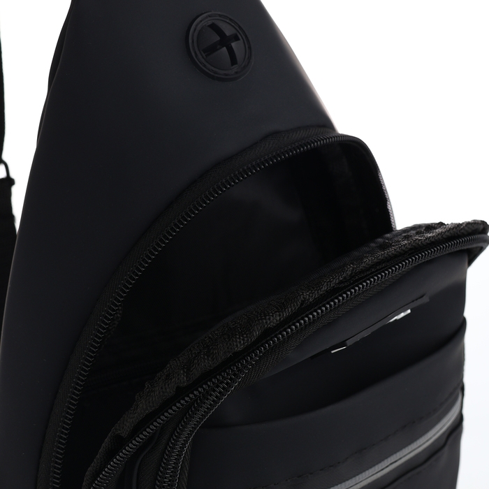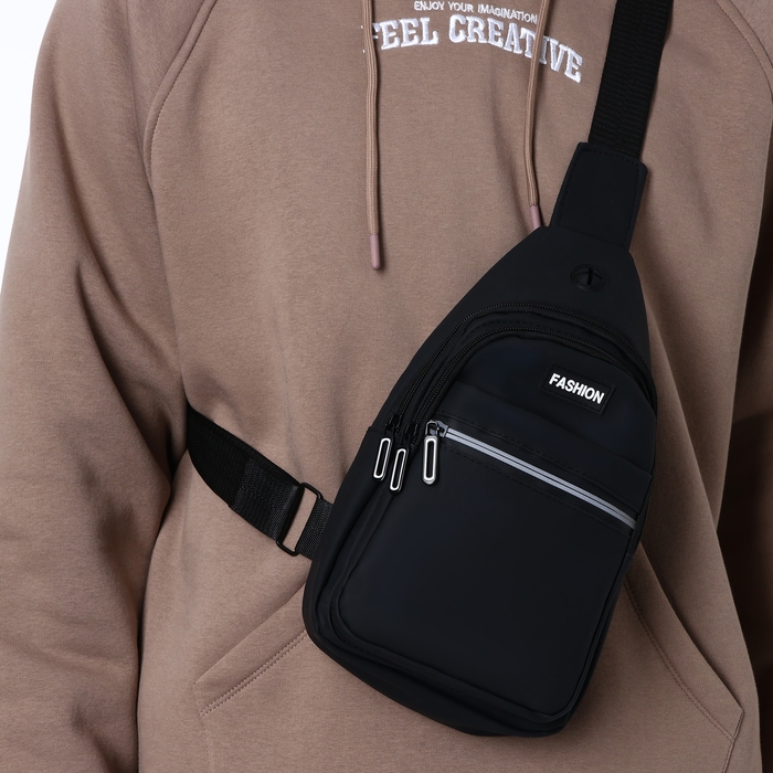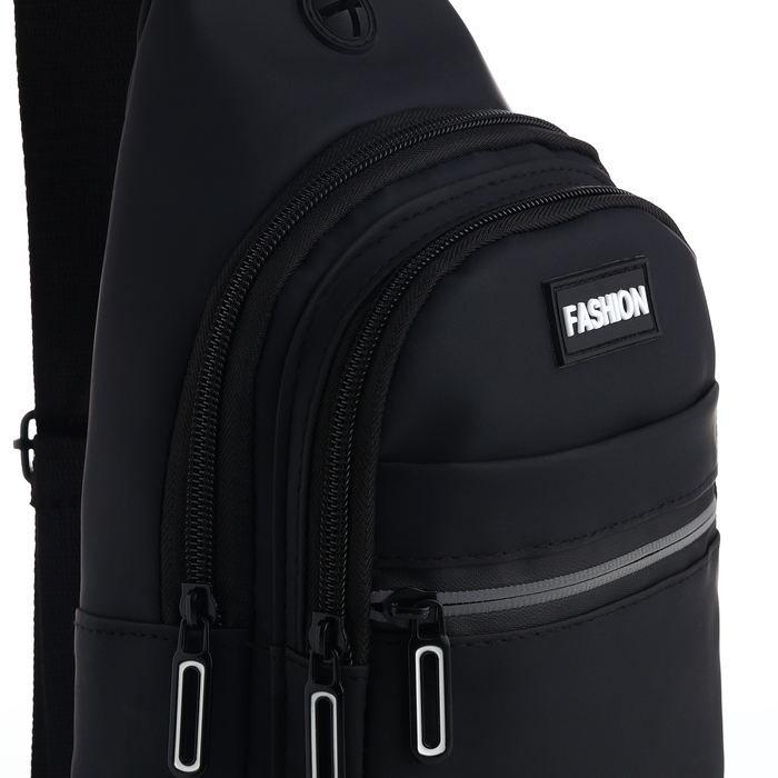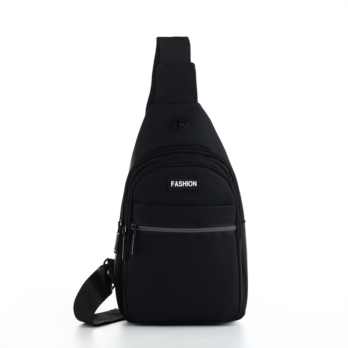 Сумка-слинг из текстиля, 3 наружных кармана, цвет чёрный