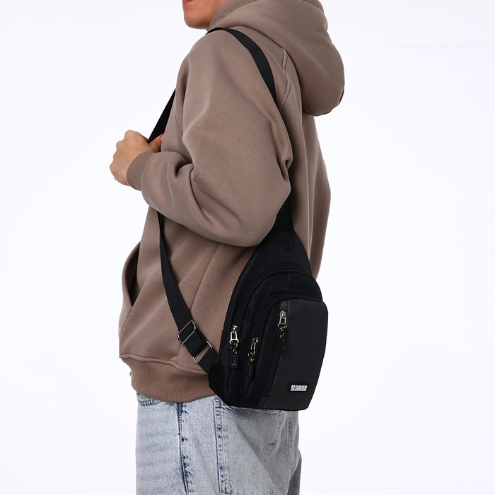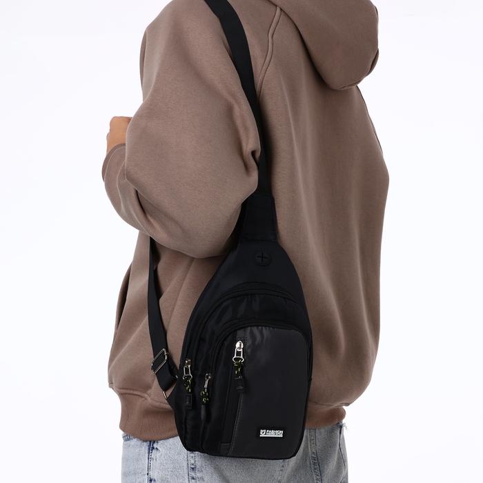 Сумка-слинг из текстиля, 3 наружных кармана, цвет серый