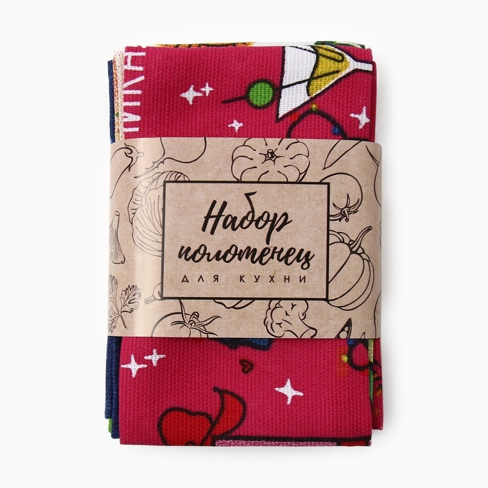 Набор полотенец Доляна "Праздничное веселье" 28х46 см - 6 шт, 100% хл, рогожка 164 г/м2