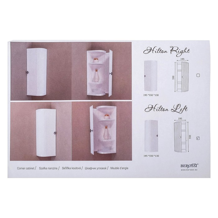 Шкафчик угловой Hilton Left, цвет снежно-белый