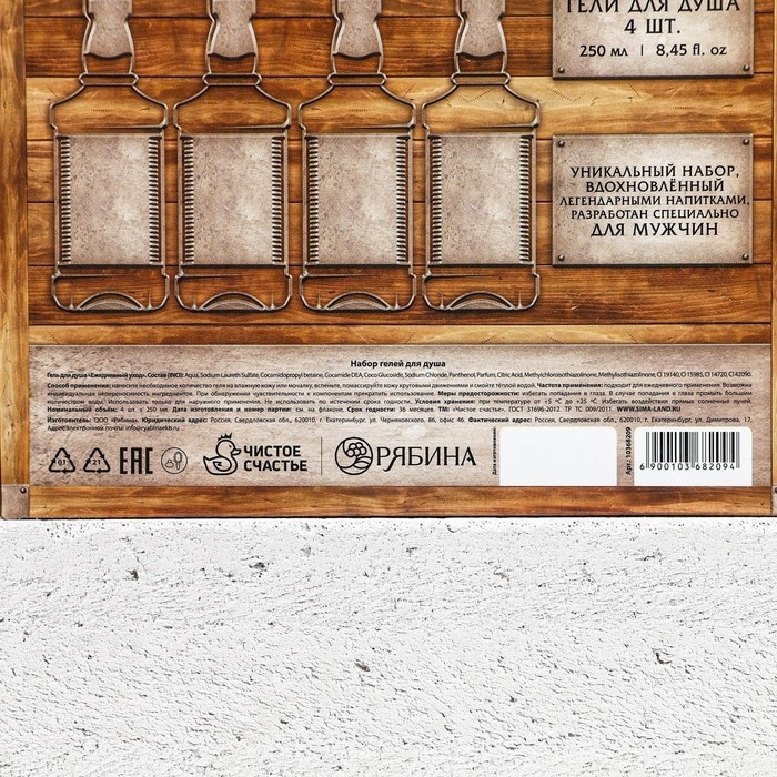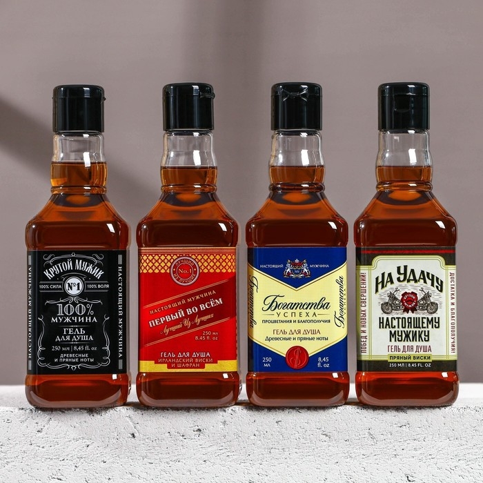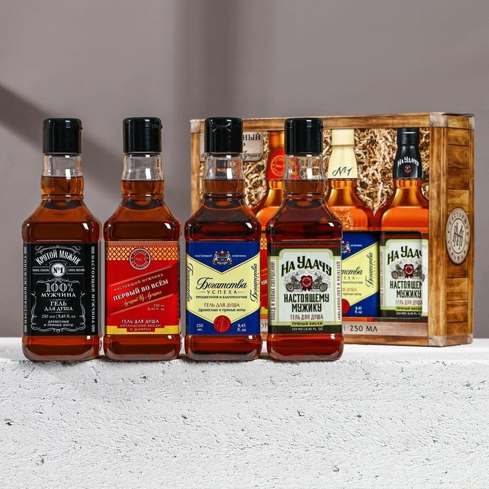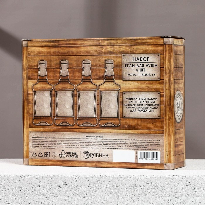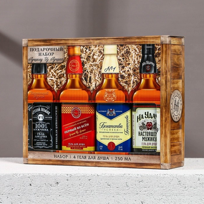 Подарочный набор косметики «Лучшему из лучших», гель для душа во флаконе виски, 4 х 250 мл, Новый Год